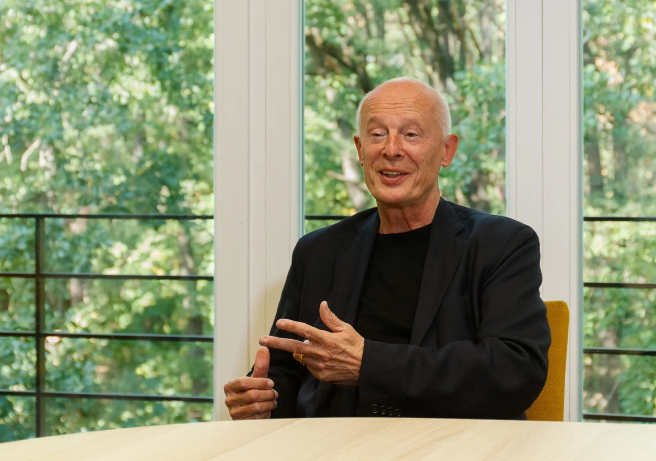 „Warum gehen wir nicht, was ich oft den Elefanten im Klimaraum nenne, an? Nämlich die gebaute Umwelt, sprich Wohnbau aber auch Infrastrukur, wo weltweit ungefähr 40 Prozent der CO₂-Emissionen herauskommen. Gehen wir nicht dieses Ungetüm mal an und überlegen, kann ich nicht nur Emissionen vermeiden, die dort entstehen, etwa wenn ich Beton herstelle. Kann ich vielleicht sogar Emissionen wieder rückgängig machen, durch die richtige Art zu bauen? Und der Königsweg ist natürlich organische Materialien einzusetzen, sprich in erster Linie Holz.“
