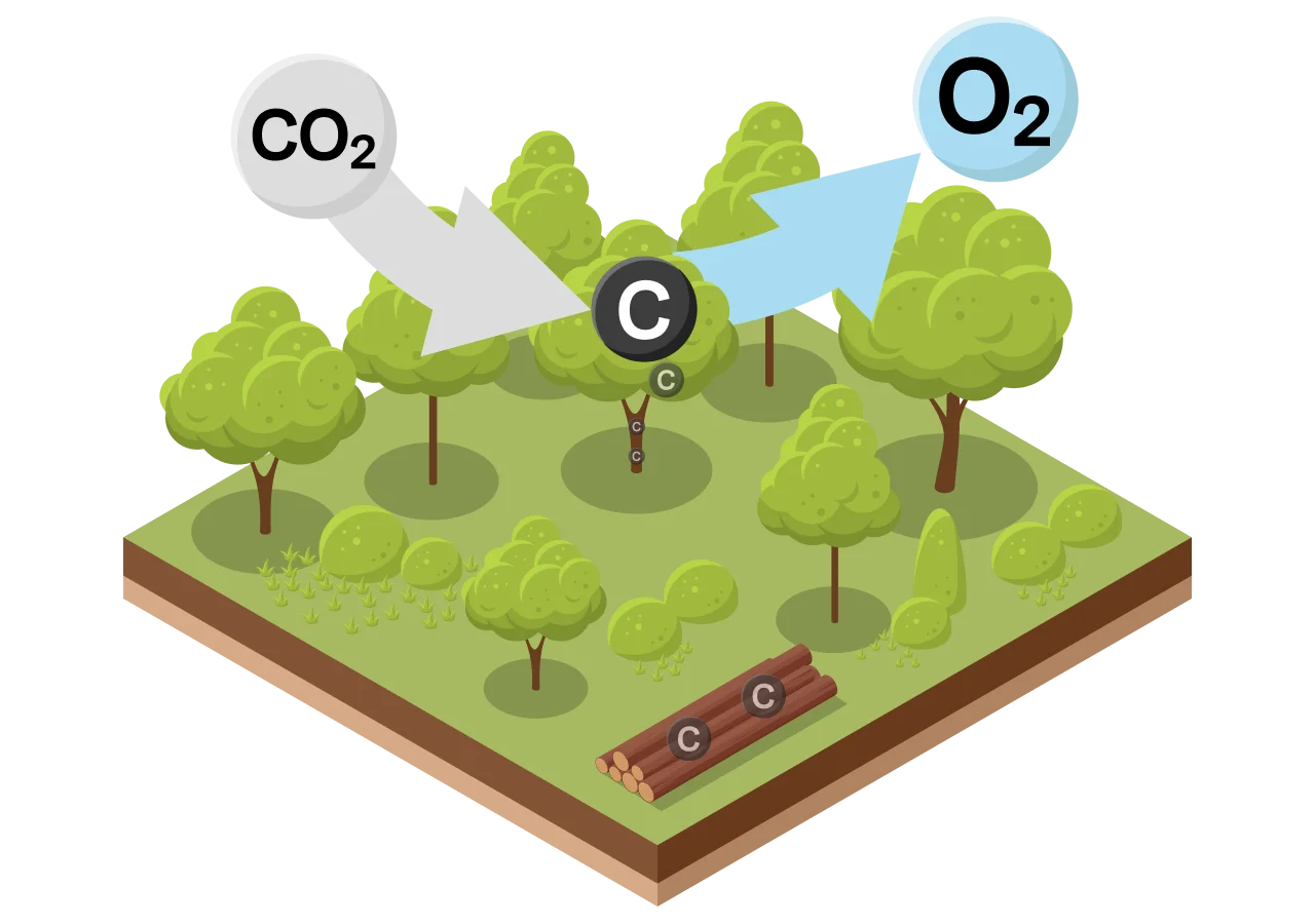- Nachhaltige Holzernte: Es wird nicht mehr Holz geerntet als nachwächst! Durch präzise und kontrollierte Baumentnahme entstehen Platz und mehr Lichteinfall für Jungbäume. Diese wachsen schneller und binden mehr Kohlenstoff als alte Bäume.