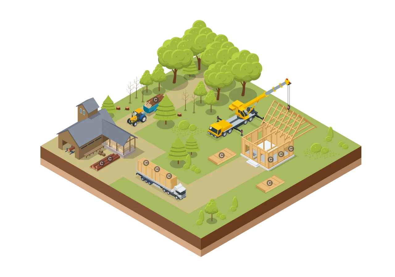 Jedes Holzhaus wird so zu einem langfristigen Kohlenstoffspeicher und trägt aktiv zum Klimaschutz bei. Gleichzeitig ermöglicht nachhaltige Forstwirtschaft, dass für jeden gefällten Baum neue Bäume nachwachsen, die erneut CO₂ aufnehmen. So bleibt der natürliche Kreislauf erhalten: Während der Wald weiter wächst und CO₂ aus der Luft abbaut, entsteht neuer Wohnraum.